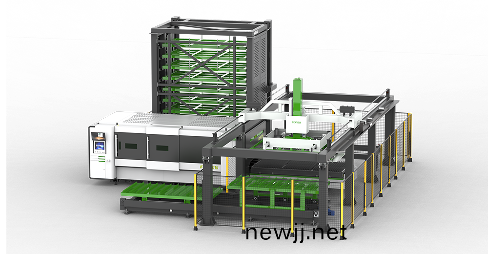 在鬆(song)穀激光切割機的切割平檯上搭載 HyStore 係列自動(dong)上下料及(ji)倉(cang)儲(chu)係(xi)統,通過輭件(jian)控製(zhi)係(xi)統進行串聯控製,實現無人值守的全自動(dong)化智能激光切割生産線(xian);
